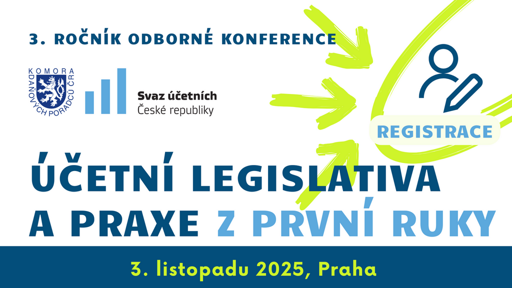 Pozvánka na konferenci - aktuální témata ve vazbě na účetní praxi a vývoj nové legislativy budou na programu 3. ročníku společné konference Komory daňových poradců a Svazu účetních České republiky. Akce se uskuteční 3. listopadu 2025 v hotelu DUO, Teplická 492/19, Praha 9