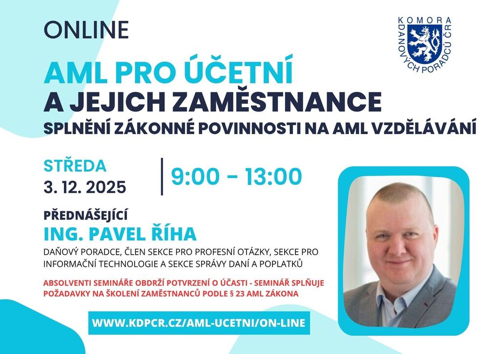 Školení je zaměřeno na povinnosti účetních dle zákona č. 253/2008 Sb., o některých opatřeních proti legalizaci výnosů z trestné činnosti a financování terorismu (AML zákon), včetně klíčových změn pro roky 2024 a 2025. Účastníci se seznámí s obecnými povinnostmi účetních (včetně účetních společností) a jejich konkrétními povinnostmi vůči klientům. Naučí se správně provádět identifikaci a kontrolu klienta, rozhodnout o odmítnutí či ukončení obchodního vztahu a oznámit podezřelý obchod. Součástí školení je i upozornění na hrozící sankce až do výše desítek milionů korun za neplnění povinností. Novinky zahrnují např. povinnost oznámit kontaktní osobu na FAÚ, zavedení eDokladů, zavedení vnitřního oznamovacího systému, přípravu nového národního hodnocení rizik. Školení poskytne praktické rady a přehled aktuálních změn, které pomohou minimalizovat rizika neplnění AML povinností.