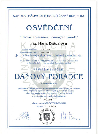 Komora daňových poradců eviduje daňové poradce a daňově poradenské společnosti v seznamu, zveřejňuje jejich adresy, kontaktní údaje, přihlášení k etickému kodexu a účast daňových poradců v kontinuálním profesním vzdělávání. Ostatní údaje si v seznamu spravují samotní poradci a poradenské společnosti.