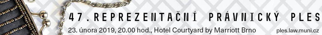Právnická fakulta Masarykovy univerzity si Vás dovoluje pozvat na 47. reprezentační právnický ples, který se uskuteční 23. února 2019 od 19.00 hodin v hotelu Courtyard by Marriott Brno. V programu vystoupí skupina Lake Malawi, DJane Olliie a kapela Party Leaders. Součástí doprovodného programu bude degustace a další milá překvapení. Večer moderuje Mgr. Jiří Václavek.