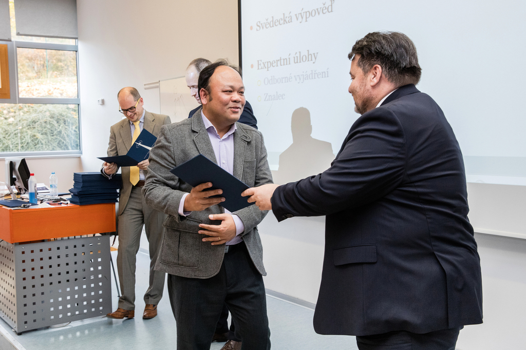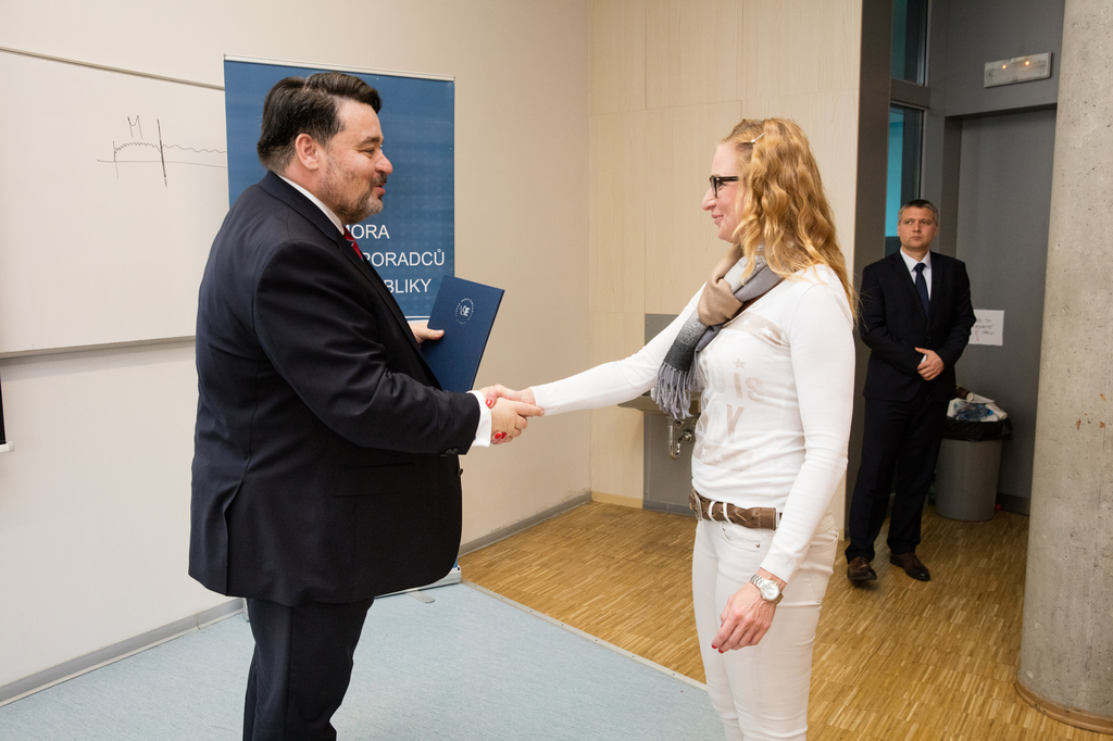 Poslední přednáška kurzu Účetnictví pro daňové poradenství na téma provázanost účetnictví a daní, kterou vedl Ing. Jan Molín, Ph.D., proběhla v pátek 20. 10. 2017. Celý kurz byl následně zakončen předáváním osvědčení úspěšným absolventům. Osvědčení předali děkan Fakulty financí a účetnictví VŠE v Praze, doc. Ing. Ladislav Mejzlík, Ph.D., společně s vedoucím Katedry finančního účetnictví a auditingu, doc. Ing. Davidem Procházkou, Ph.D. a přednášejícím. Úspěšným absolventům blahopřejeme!