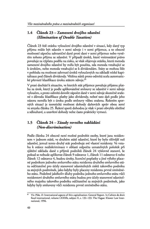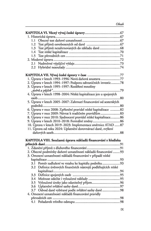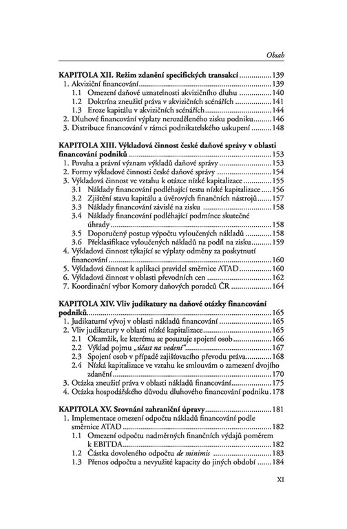 Historické daňové zvýhodnění dluhového financování v porovnání s financováním prostřednictvím kapitálu významně ovlivňuje podnikatelská rozhodnutí o celkové struktuře dluhu a kapitálu. Následkem je incentivizace excesivního dluhového zatížení podniků. To může vést k vyvádění zisků podniků ze zemí, kde se odehrává skutečná podnikatelská aktivita do zemí s nižším zdaněním. Snaha tento proces korigovat zaváděním nových a přísnějších podmínek pro odpočet nákladů na dluhové financování jeho incentivizaci snižuje, koncepčně však neřeší otázku historické asymetrie dluhového a kapitálového financování. Může být řešením opačný přístup, tedy incentivizace kapitálu formou odpočtu fiktivních nákladů na kapitál? Takový odpočet v současnosti není možný, v účetnictví podniku se žádné náklady související s přijetím kapitálu nenacházejí. Kapitál zdarma však neexistuje. Tato monografie je určena zejména odborníkům v oblasti daní a daňového práva. Poskytuje komplexní náhled na otázku daňových dopadů dluhového financování podniků jak v současné praxi, tak z hlediska vývoje úpravy odpočtu nákladů financování a iniciativ, současných i těch připravovaných, jak tento odpočet regulovat z hlediska výběru daní i dalších rizik souvisejících s podkapitalizací podniků.