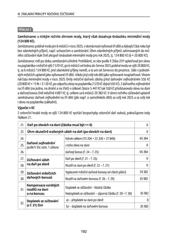 Publikace vás provede celým procesem ročního zúčtování – od žádosti zaměstnance přes kontrolu dokladů a správný postup zaměstnavatele až po vyúčtování vůči správci daně. Díky přehledné struktuře, ilustračním příkladům a odpovědím na skutečné problémy získáte jistotu a vyhnete se chybám nejen v ročním zúčtování.