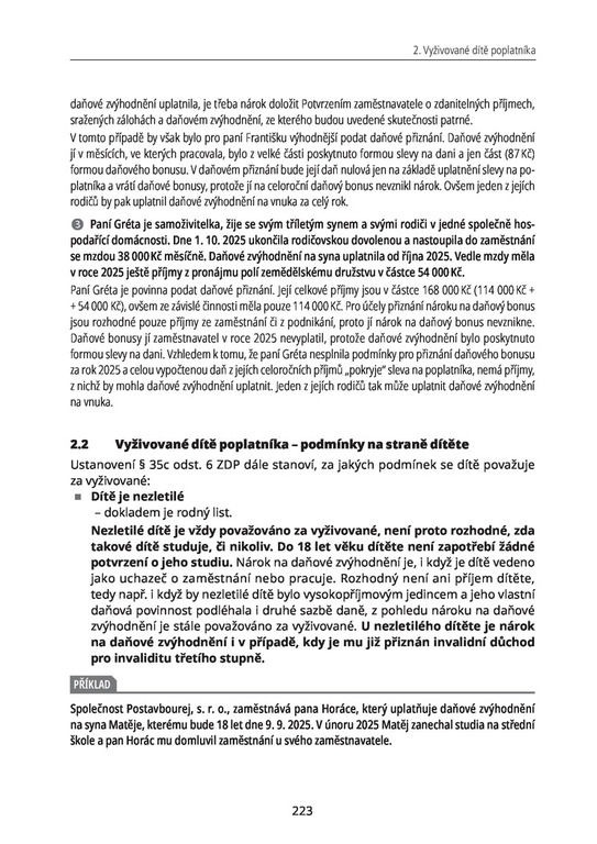 - zcela novou rozsáhlou kapitolu, k daňovému zvýhodnění na děti, včetně úpravy podmínek soustavné přípravy na budoucí povolání od 1. 10. 2025 – srozumitelně vysvětleno, kdy lze daňové výhody uplatnit a jaké doklady zaměstnavatel musí požadovat;