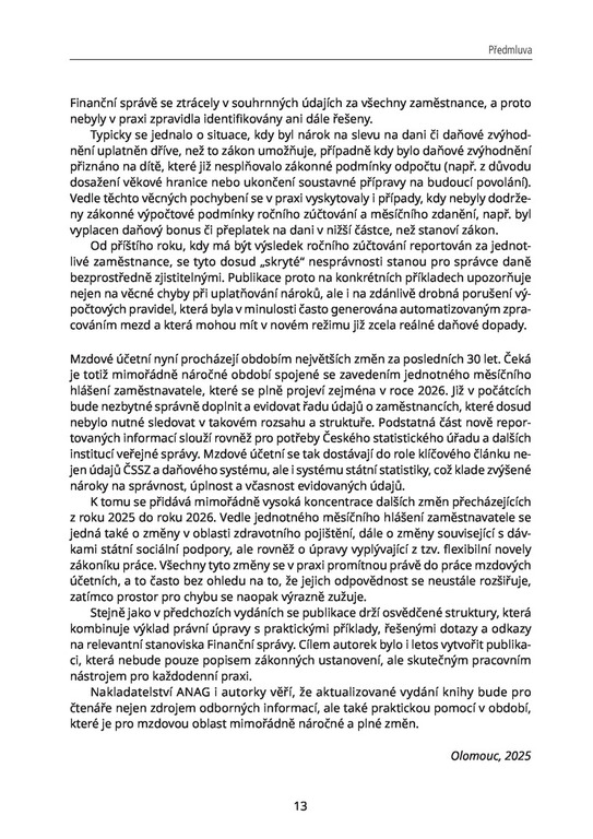 - kapitolu dotazy z praxe, obsahující více než 70 konkrétních problémů, které autorky během roku 2025 řešily přímo se mzdovými účetními – otázky a odpovědi k nejčastějším tématům, se kterými se lze setkat v každodenní praxi;