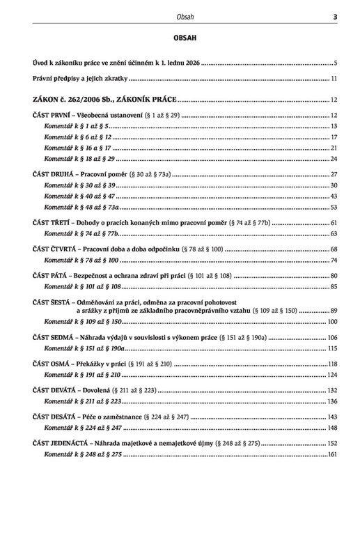 Předkládané, v pořadí již 24., aktualizované vydání publikace obsahuje vedle kompletního platného a účinného paragrafového znění zákoníku práce k 1. lednu 2026 také komentář k jednotlivým věcně souvisejícím skupinám zákonných ustanovení s promítnutím některých nových zkušeností a poznatků aplikační praxe a také některých aktuálních soudních judikátů. Nově je komentář doplněn řadou praktických příkladů.